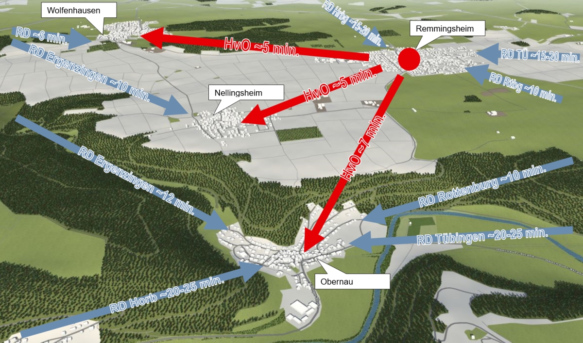 Anfahrtszeiten Rettungsdienst (gem. Routenplaner)